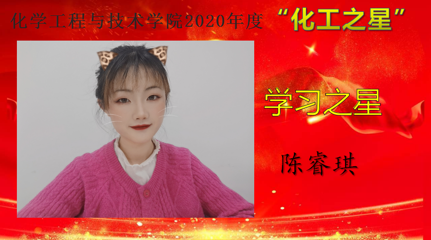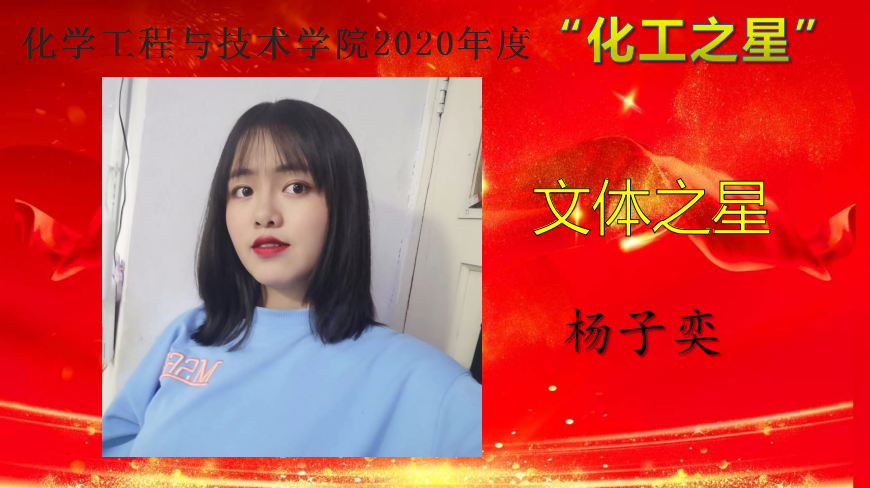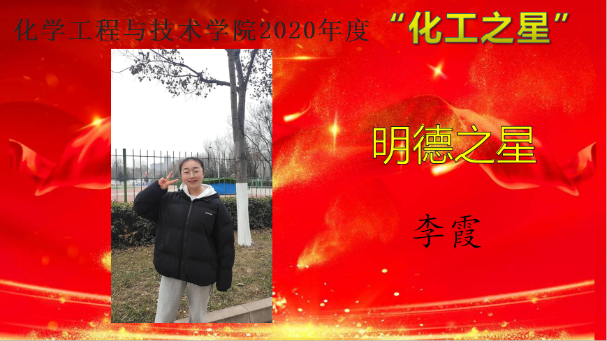为深入学习贯彻习近平新时代中国特色社会主义思想,培育和践行社会主义核心价值观,弘扬青春正能量,充分展示pp电子游戏平台网站大学生精神风貌,促进学院学风建设,营造积极向上的育人氛围,教育和引导同学们做励志成才、奋发有为、感恩奉献的新时代大学生。12月15日——12月25日,pp电子游戏平台网站举办了2020 年度“化工之星”评选活动,遴选在德智体美劳各个方面表现优异的学生,授予pp电子游戏平台网站2020年度“明德之星”、“学习之星”、“文体之星”、“公益之星”、“实践之星”、“服务之星”、“自强之星”荣誉称号。