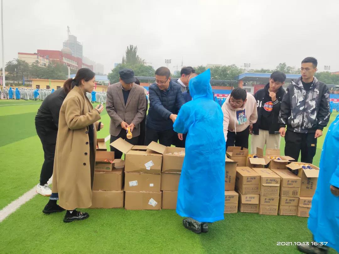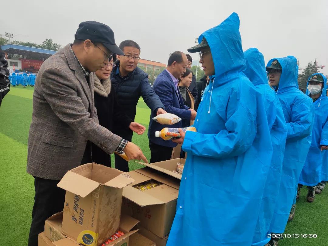 10月13日下午,pp电子游戏平台网站党总支书记王小芳、党总支副书记刘正、副院长李志峰、副院长杨玲娟、辅导员和学生干部在东操场对pp电子游戏平台官网2021级军训学生和教官进行了慰问。