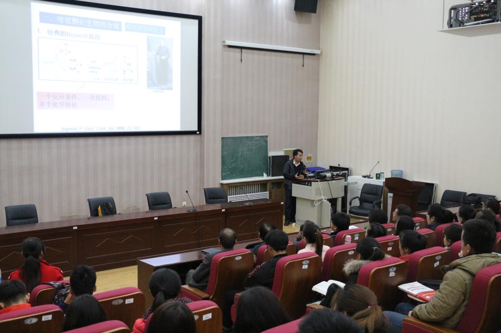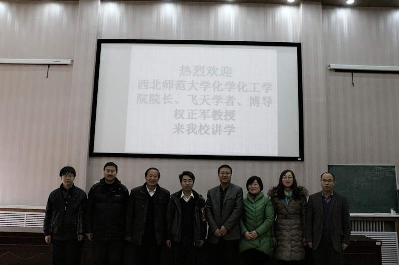 2016年12月5日西北师范大学化学pp电子游戏平台网站现主持工作领导、甘肃省“飞天学者”特聘教授、甘肃省教育学会化学教学专业委员会副理事长、博士研究生导师权正军教授,在pp电子游戏平台官网四号报告厅向pp电子游戏平台网站师生做了题为《含硫氮杂环化合物参与的偶联反应研究》的学术报告。