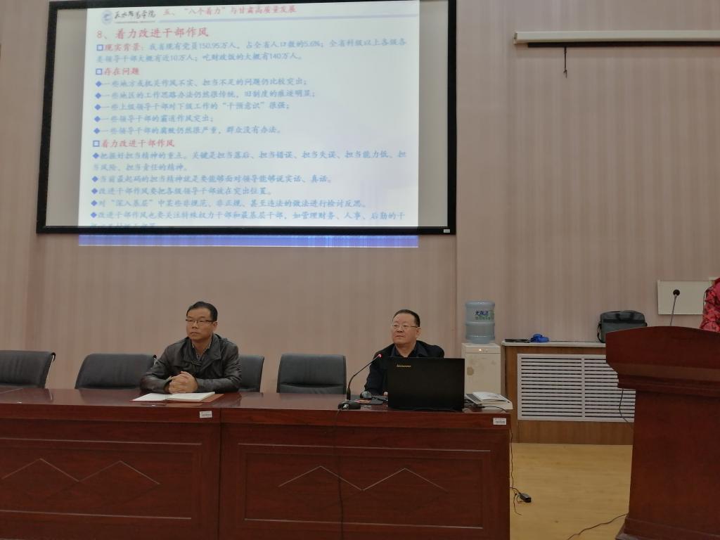 11月5日下午,校党委常委、副校长王旭林在4号报告厅为pp电子游戏平台网站师生宣讲《习近平谈治国理政》第三卷。报告会由pp电子游戏平台网站党总支书记王建斌主持,pp电子游戏平台网站全体党员及入党积极分子参加报告会。