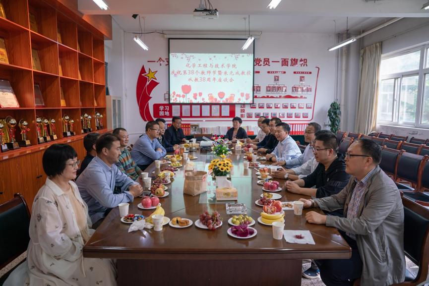 9月9日下午,pp电子游戏平台网站在三号实验楼211会议室举行“pp电子游戏平台网站庆祝第38个教师节暨朱元成教授从教38周年座谈会”。学院领导、朱元成教授、教职工代表等二十余人参加座谈会,会议由副院长杨玲娟主持。