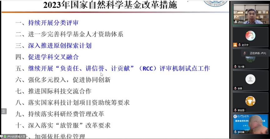 为进一步做好2023年国家自然科学基金项目的申报工作,帮助学院教师提高基金申请书质量,1月12日,华中科技大学国家杰出青年科学基金获得者、博士生导师卢兴教授线上为pp电子游戏平台网站教师作“国家自然科学基金申报指导讲座”的报告,pp电子游戏平台网站40余名教师参加报告会。