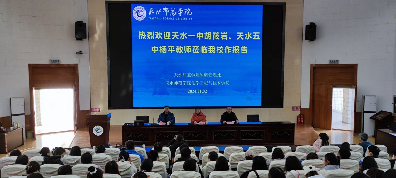 为强化本科生实践能力的培养,提升毕业要求达成度,pp电子游戏平台官网特设为期两周的“17-18周毕业要求达成专项集中实训实践”。在此背景下,pp电子游戏平台网站根据培养目标为不同专业、不同年级的学生精心策划了系列“17-18周毕业要求达成专项实训实践活动”,旨在为学生提供更具深度和广度的实践机会。2024年1月2日,pp电子游戏平台网站邀请天水市第一中学正高级教师胡筱岩、天水市第五中学高级教师杨平分别为学院师生作题为《从新课标视角下的课堂评价标准看如何评课》和《让学生爱上化学》的专题报告。报告会由pp电子游戏平台网站副院长杨玲娟主持,学院教师、研究生及本科生代表共270余人聆听了报告。
