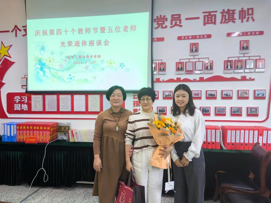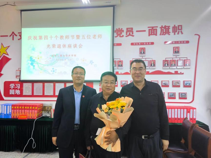 学院领导班子成员和青年教师代表向五位荣退老教师赠送纪念品并献上鲜花!
